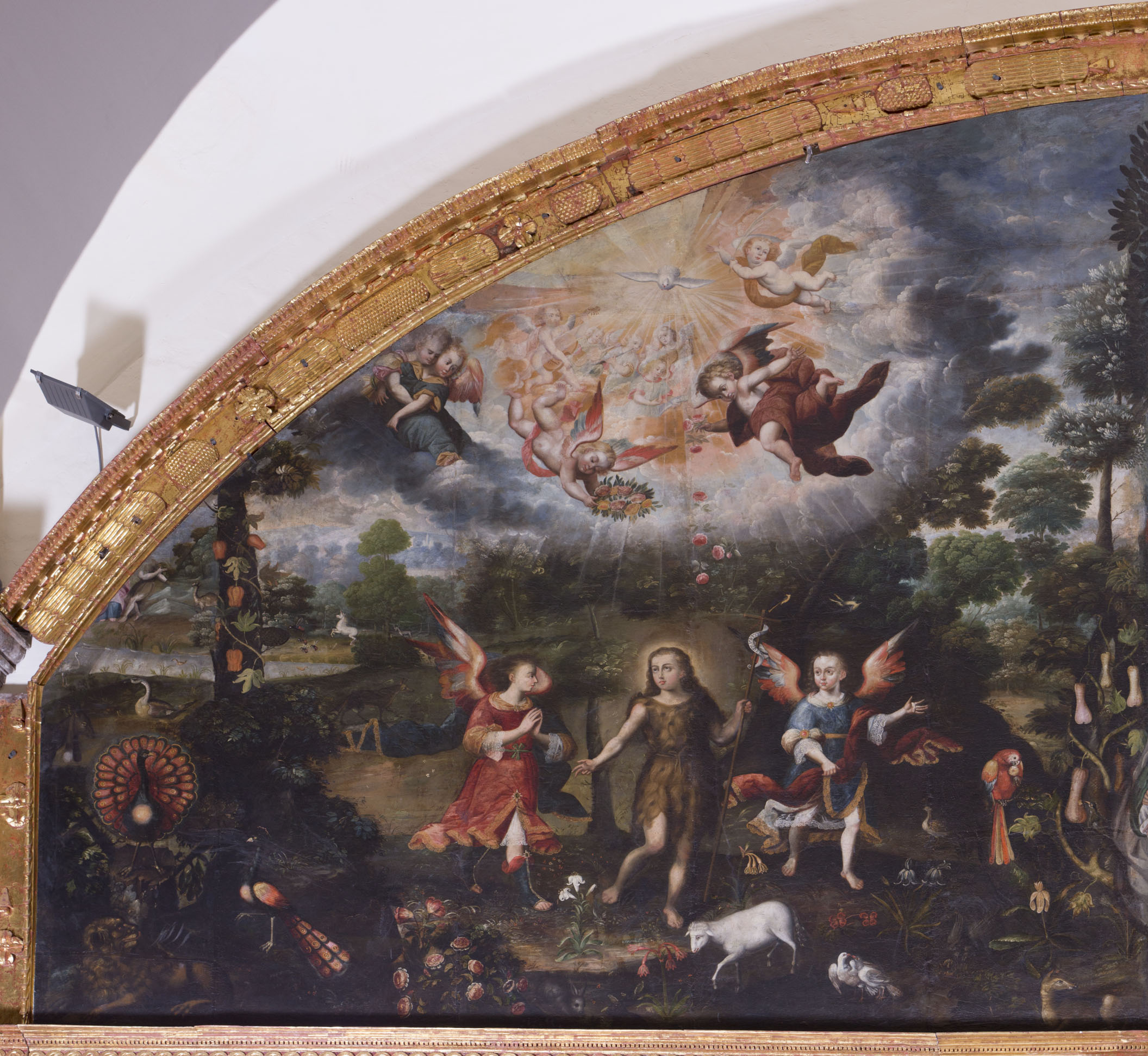 | El Bautizo de Cristo por Diego Quispe Tito. Museo de Santa Catalina, Perú. Pintura de óleo sobre tela. |